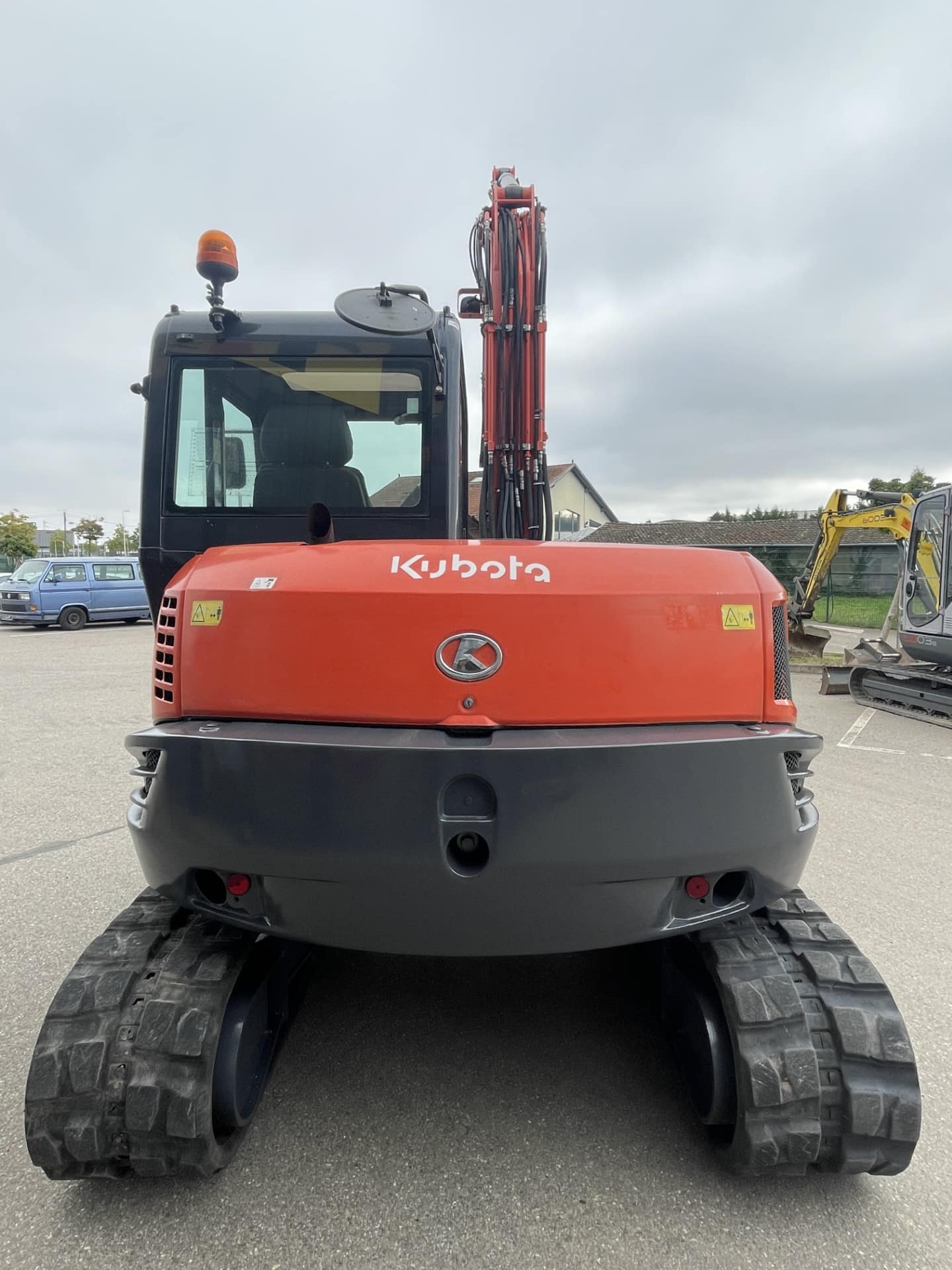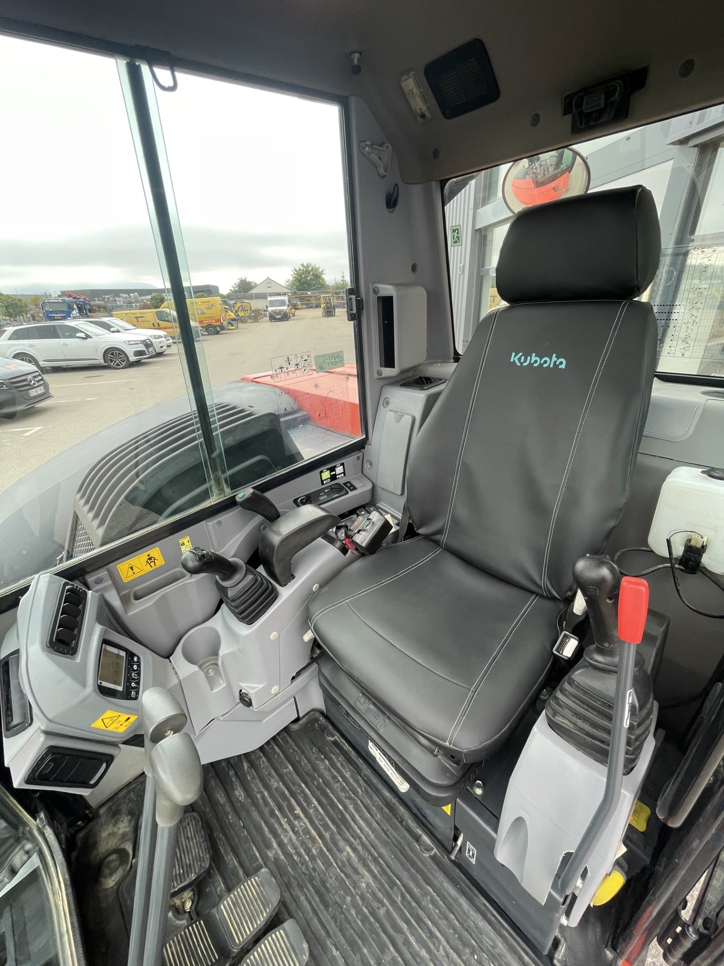 Accessoires : Phares de travail sur cabine / Siège mécanique avec housse protection de siège / Climatisation / Gyrophare / 2 lignes hydrauliques auxiliaires / Système automatique Oilquick OQ45 / Balancier long / Commandes proportionnelles
